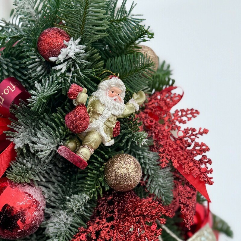 - Новогодняя елочка из нобилиса с декором в красной гамме