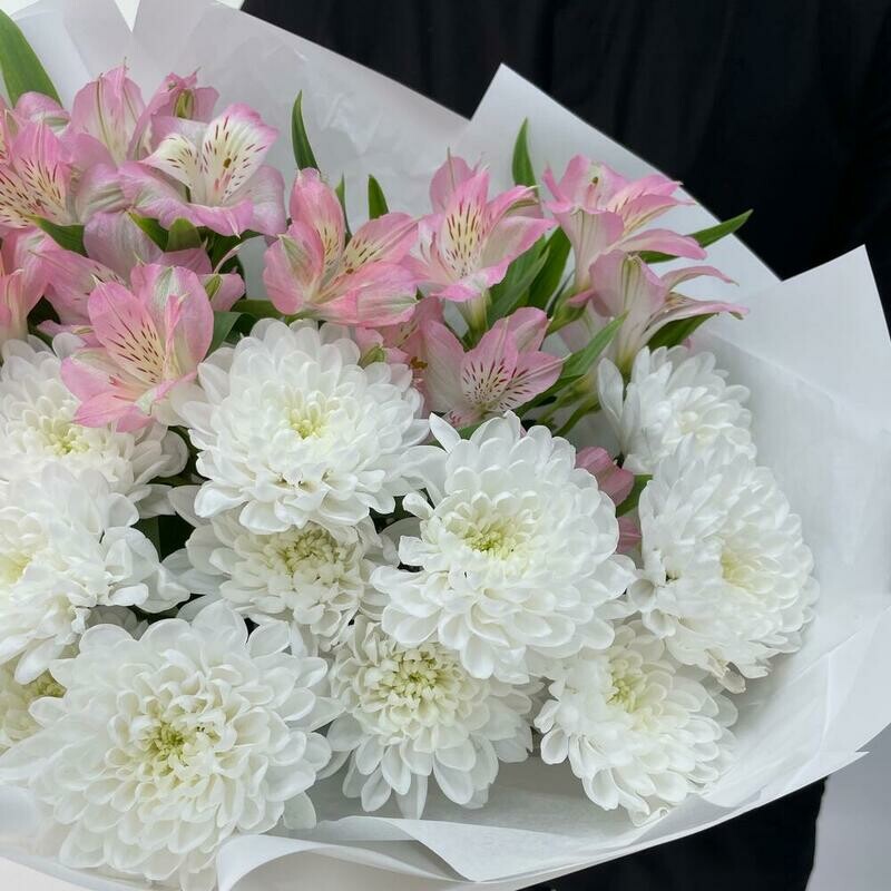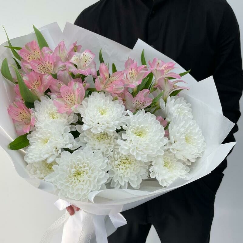 Стойкий букет из альстромерий и кустовых хризантем, стандартный