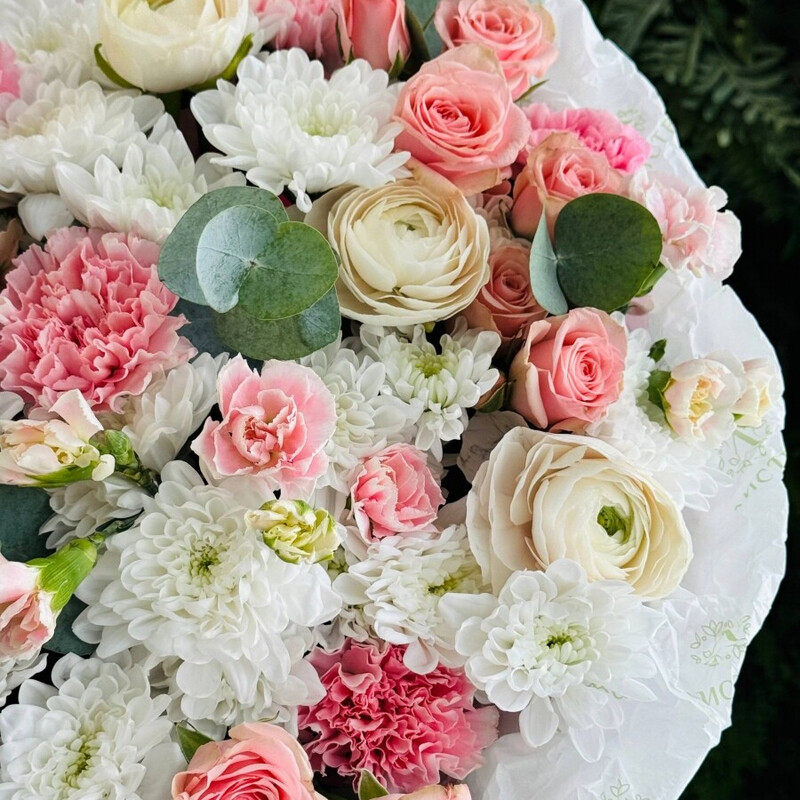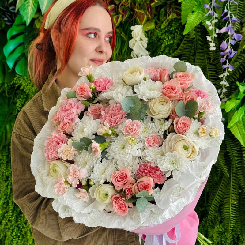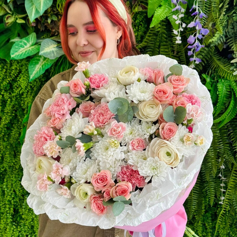 Этот букет — шёпот нежности, который скажет всё за вас. Он создан, чтобы растопить сердце и окутать теплом самую важную женщину в вашей жизни. Преимущества нашей доставки: Аквабокс для свежести – цветы доставляются «на воде», чтобы дольше оставались свежими. После получения просто переставьте композицию в вазу. Инструкция свежести – дарим инструкцию свежести по уходу и питательную подкормку, чтобы цветы радовали вас как можно дольше. Удобная переноска – доставляем букет в фирменном пакете, который защищает цветы и делает транспортировку комфортной. Заказывайте с уверенностью – ваши цветы приедут свежими и красивыми Состав согласовываем индивидуально, исходя из сезонности и актуальности