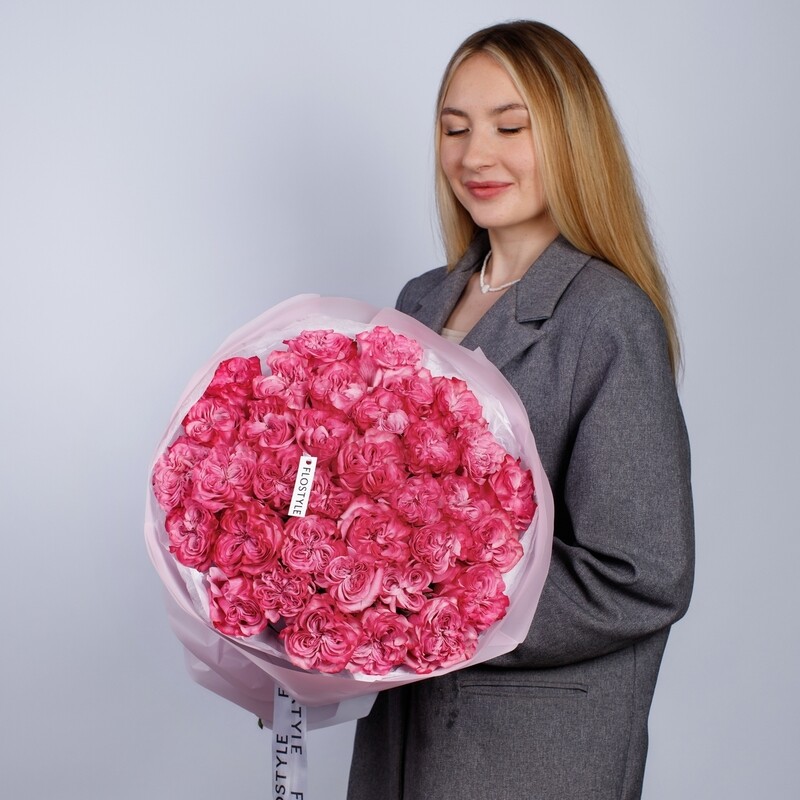 Роскошный монобукет из 35 пионовидных роз сорта Country Blues. Нежный пыльно-розовый оттенок и кудрявые лепестки сердцевидной формы делают этот сорт фаворитом флористов — он выглядит объемно, дорого и напоминает пионы . FLOSTYLE доставит этот впечатляющий букет в любой район города. Идеальный подарок на день рождения, юбилей, 8 Марта или признание в самых искренних чувствах. Закажите доставку цветов уже сегодня!