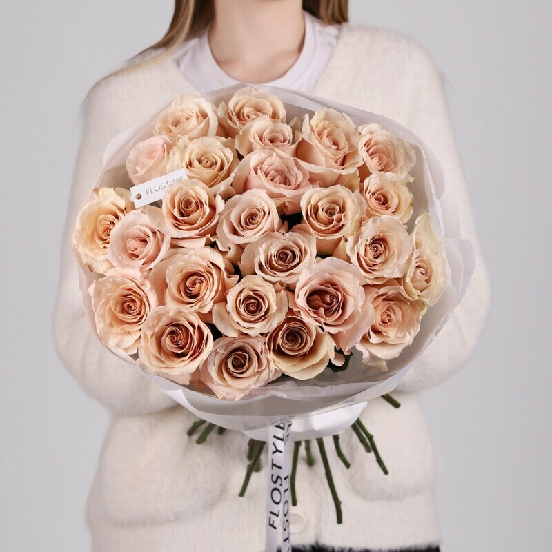 Нежный букет из 25 романтических роз Quicksand от FLOSTYLE. Роскошный объем в самом модном пудрово-карамельном оттенке — 25 роз сорта Quicksand с их благородным, невесомым цветом создают образ утонченный, современный и очень романтичный. Идеальный подарок на 8 Марта, 14 февраля, день рождения, годовщину свадьбы, помолвку или предложение руки и сердца. Прекрасный выбор для любимой, жены, невесты или мамы — Quicksand символизирует нежные чувства, чистоту намерений и безупречный вкус дарителя. Свежие цветы с доставкой по Новосибирску и области. Подарите эту пудровую нежность в роскошном объеме с FLOSTYLE — заказывайте прямо сейчас!