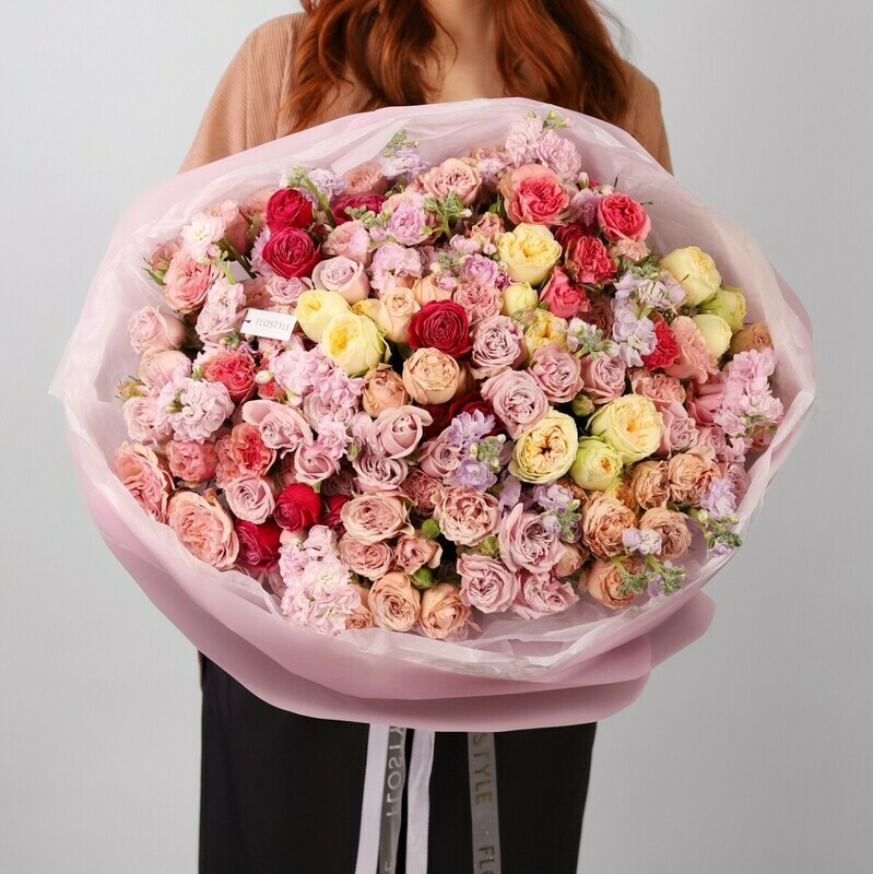 Нежный букет в шляпной коробке с белыми розами от FLOSTYLE. Изысканная композиция в розовой шляпной коробке: благородные белые розы, нежные бежевые диантусы и свежий эвкалипт. Коробка не требует вазы и становится стильным украшением любого интерьера. Идеальный подарок на 8 Марта, 14 февраля, день рождения, годовщину свадьбы, помолвку или рождение малыша. Прекрасный выбор для мамы, жены, сестры или возлюбленной — белый цвет символизирует чистоту, нежность и искренность чувств, а розовая коробка добавляет романтичности и тепла. Свежие цветы с доставкой по Новосибирску и области. Закажите этот нежный шедевр в FLOSTYLE прямо сейчас!