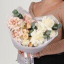 Авторский букет с французскими розами Квиксенд и Плайя Бланка от FLOSTYLE. Изысканная, благородная композиция для ценителей безупречного стиля: трендовая пудровая роза Квиксенд, белоснежная роза Плайя Бланка, кустовая роза Салинеро, нежные белые диантусы и свежий эвкалипт. Идеальный подарок на 8 Марта, 14 февраля, день рождения, годовщину свадьбы, помолвку или романтическое свидание. Прекрасный выбор для мамы, жены, сестры или возлюбленной — сочетание французских роз говорит о безупречном вкусе дарителя, а диантусы и эвкалипт добавляют легкости и свежести. Свежие цветы с доставкой по Новосибирску и области. Закажите этот авторский шедевр в FLOSTYLE прямо сейчас!