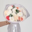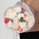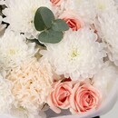 Сборный букет с белой хризантемой, розовыми кустовыми розами, розовыми диантусами и эвкалиптом от FLOSTYLE. Свежая, нежная и очень гармоничная композиция для самых теплых поздравлений: пушистая белая хризантема, нежные розовые кустовые розы, трогательные розовые диантусы и свежий эвкалипт. Идеальный подарок на 8 Марта, день рождения, годовщину свадьбы, свидание или сюрприз без повода. Прекрасный выбор для мамы, подруги, сестры, коллеги или учителя — белая хризантема символизирует чистоту и искренность, розовые розы говорят о нежных чувствах, а эвкалипт добавляет свежести и легкого аромата. Свежие цветы с доставкой по Новосибирску и области. Закажите этот свежий букет в FLOSTYLE прямо сейчас!
