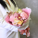 Авторский сборный букет с орхидеей, розовыми диантусами и кустовой розой Трейси