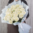Букет из 25 белых роз сорта Эквадор, стандартный