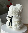 Это не просто игрушка. Это самый трогательный и роскошный символ любви, заботы и вечной привязанности. Медвежонок, собранный вручную из сотен белоснежных лепестков роз, словно соткан из нежных чувств и самых светлых обещаний.
