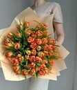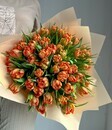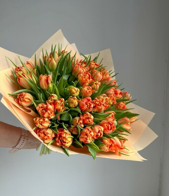 Этот букет — как глоток живительного солнечного света! Яркие, сочные, словно налившиеся летним зноем, оранжевые тюльпаны несут с собой заряд бодрости, тепла и невероятного оптимизма. Их пламенные чашечки, устремлённые ввысь, напоминают язычки костра, согревающего даже в самый хмурый день.