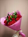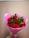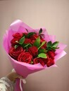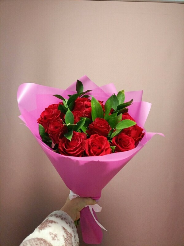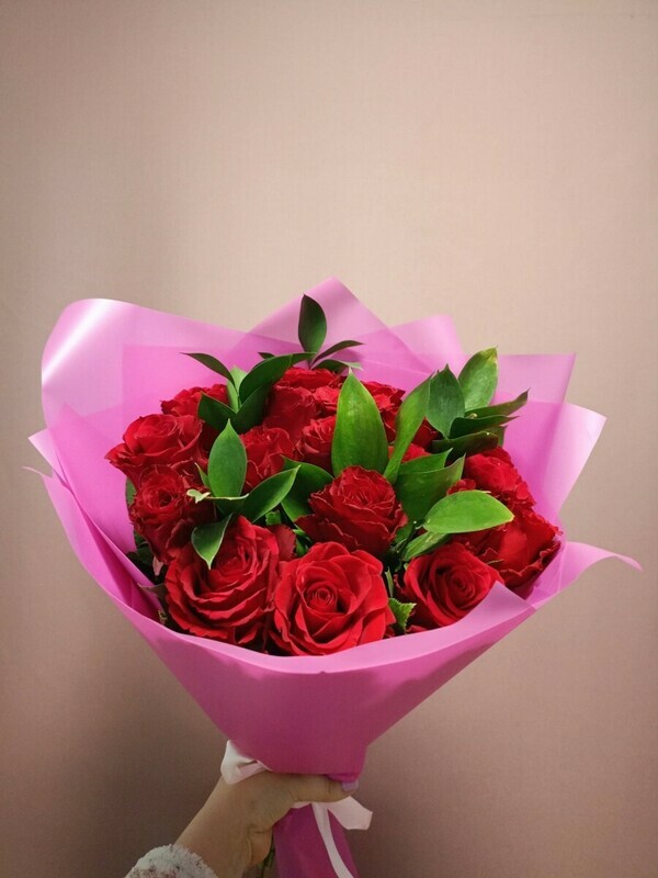 Этот букет включает в себя красивые розы, которые являются символом любви и нежности, а также зеленый рускус, добавляющий букету легкость и свежесть. Он упакован в стильную дизайнерскую упаковку, которая придает ему особую изысканность и привлекательность. Этот букет идеально подойдет для подарка вашей любимой женщине, другу или коллеге, чтобы они почувствовали вашу заботу и внимание.