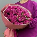 Пионовидные яркие кустовые розы в стильном букете 9 шт