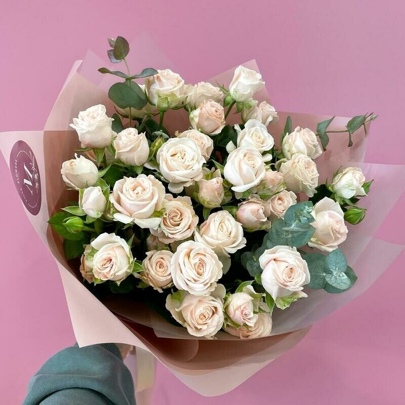 7 кустовых пионовидных роз с эвкалиптом, стандартный