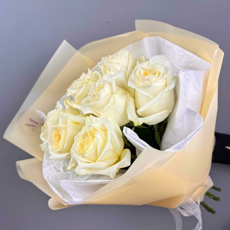 Пионовидной сливочные розы в стильном букете