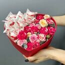 Коробка сердце с кустовой розой и конфетами Raffaello