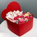 Коробка сердце с кустовой розой и конфетами Raffaello, стандартный