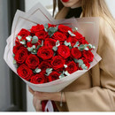 Букет красных роз и ароматный эвкалипт