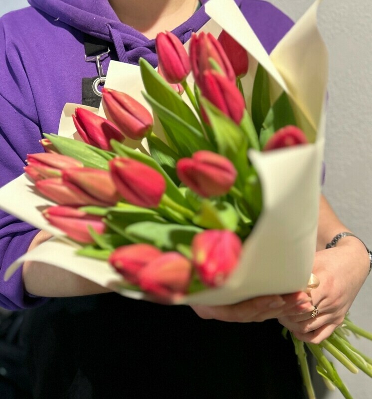 - Букет из красных тюльпанов