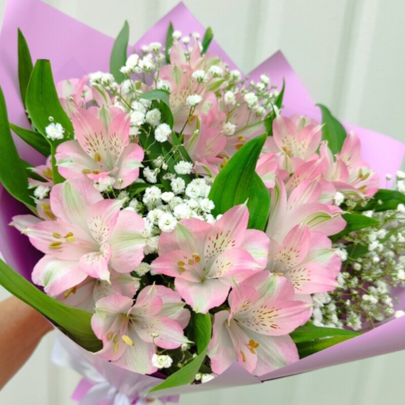 Альстромерии розовые с гипсофилой