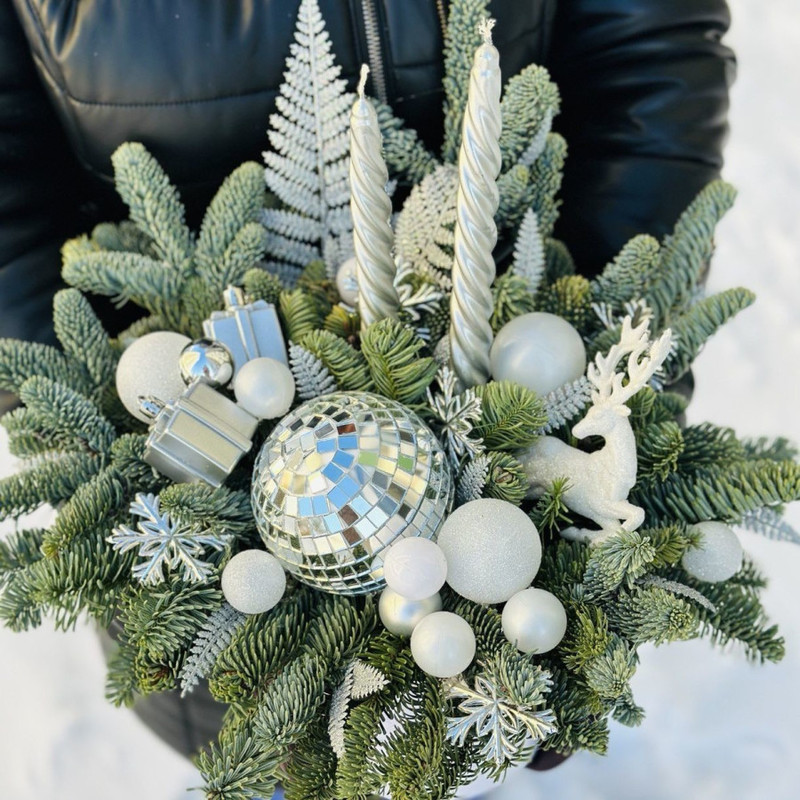 Сказочная новогодняя композиция с нобилисом, свечами и декором. Идеальный подарок к празднику, отличная возможность создать новогоднее настроение
