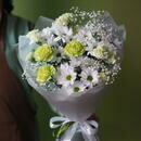 Стойкий букет из белой кустовой хризантемы и диантуса