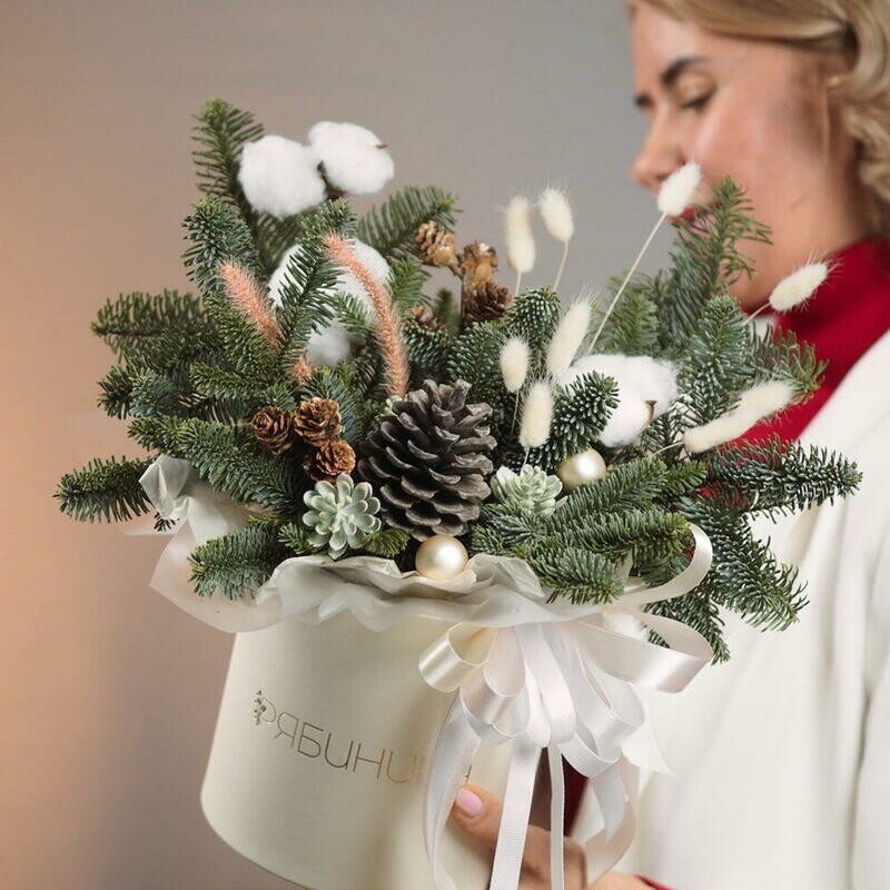 Вошебная зимняя композиция из нобилиса с сухоцветами, стандартный