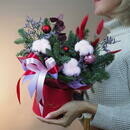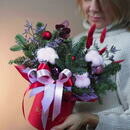 Яркая зимняя композиция из нобилиса хлопка и декора