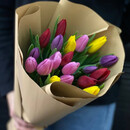 Букет из 19 тюльпанов (цвет микс) в оформлении