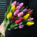 Букет из 19 тюльпанов (цвет микс) на ленте
