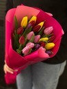 Букет из 21 тюльпана (цвет микс) в оформлении