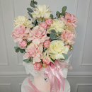 2 шт.Оформление: шляпная коробка; губка флористическая, лента; тишью
