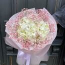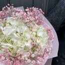 Этот нежный букет включает в себя красивые гортензии и легкую гипсофилу, создавая романтическую атмосферу. Он упакован в стильную корейскую бумагу, что делает его отличным подарком для особого человека. Этот букет будет идеальным приветствием на любое торжество или просто для поднятия настроения близкому человеку.