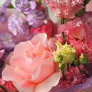 Нежный авторский букет из розы, эустомы, гвоздики и маттиолы, как легкое прикосновение!
