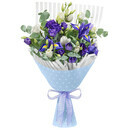 От букета из ярко-синих ирисов и белоснежных лизиантусов веет свежестью. Это утреннее небо в букете для тех, кто дорог. Пожалуй, хороший день должен начинаться именно с такого подарка.