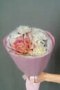 - Авторский букет комплимент их французской розы, хризантемы и диантуса