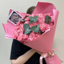 - Монобукет из 23 розовых диантусов и эвкалипта