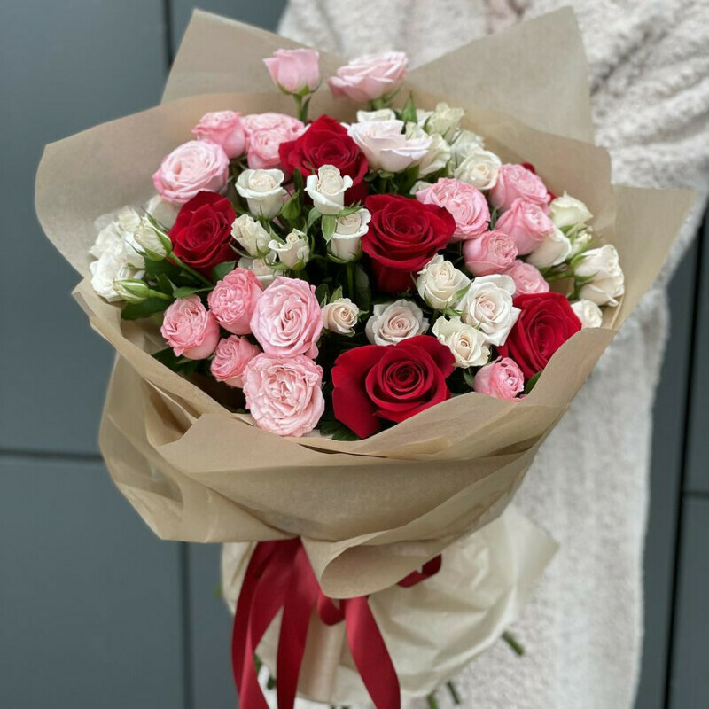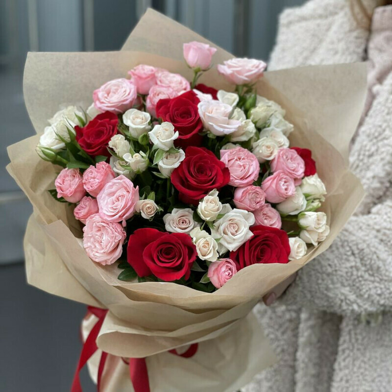 Букет кустовые розы о одноголовые