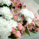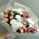 - Букет из кустовых роз,хризантем и альстромерий