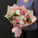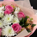 - Сборный букет из хризантем, альстромерии и розы