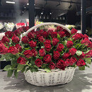 Роскошная композиция в корзине из 101 розы