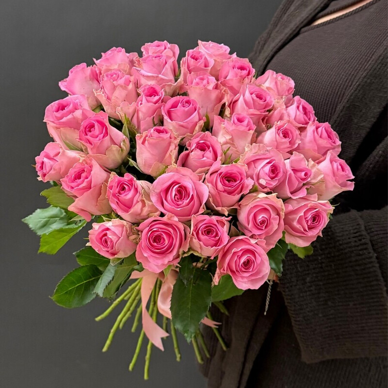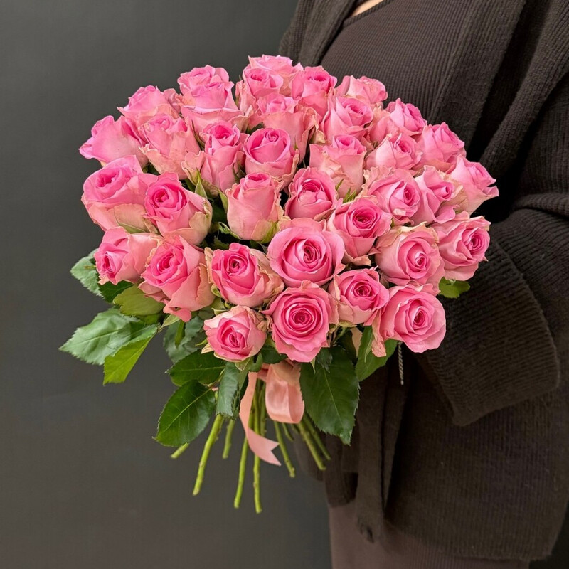 - 35 ярко-розовых роз под ленту