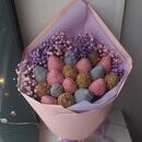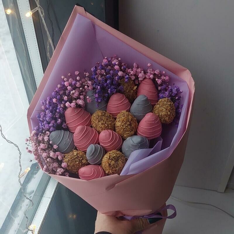 Букет с клубникой в бельгийском шоколаде и разноцветной гипсофилой