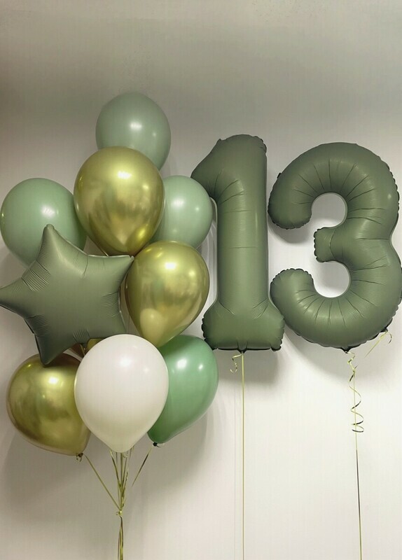 Набор Хаки стайл* включает: - цифры цвета хаки 102 см с гелием на грузе - фонтан 13 единиц с гелием на грузе, состоит из: 1 звезда фольга хаки, 3 хром золото, 3 оливковый, 3 кремовый люкс Весь латекс обработан специальным раствором для долготы полета. упаковка в транспортировочный пакет * Опция: индивидуальная надпись на звезде (дополнительная оплата)