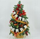 Новогодняя ёлочка 70 см ручной работы из нобилиса с гирляндами флажки и крендельки в шляпной коробке