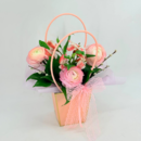 Букет "Нежность" в сумочке. Сумочка с цветами ранункулюс, альстромерия, веточки вербы и рускус, стандартный