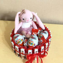 Торт из шоколадок киндер с мягкой игрушкой (рандомная)