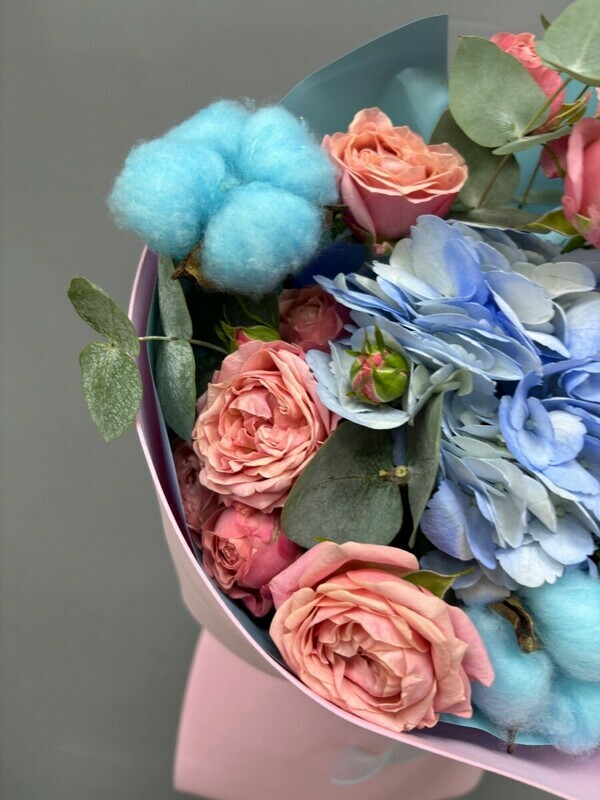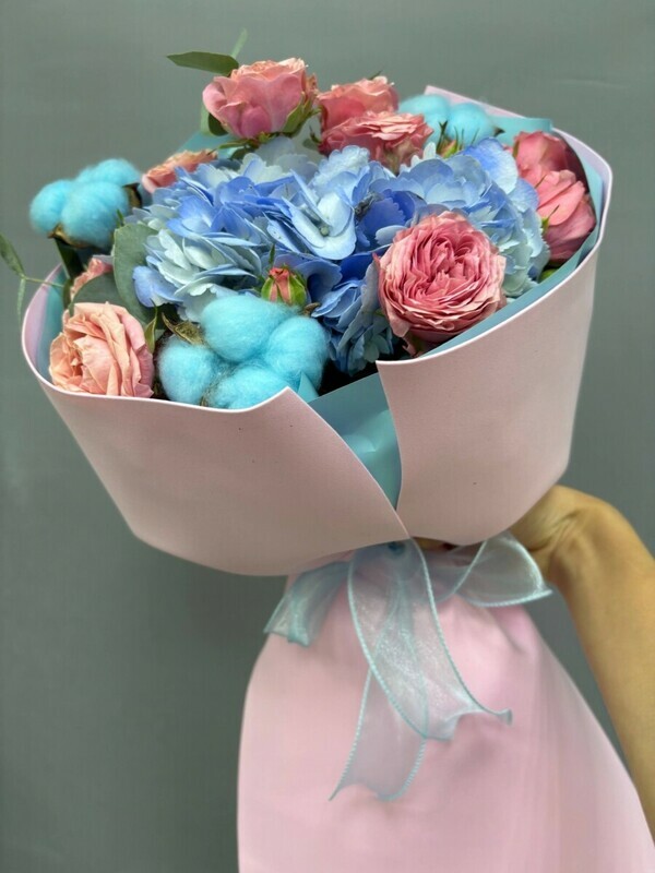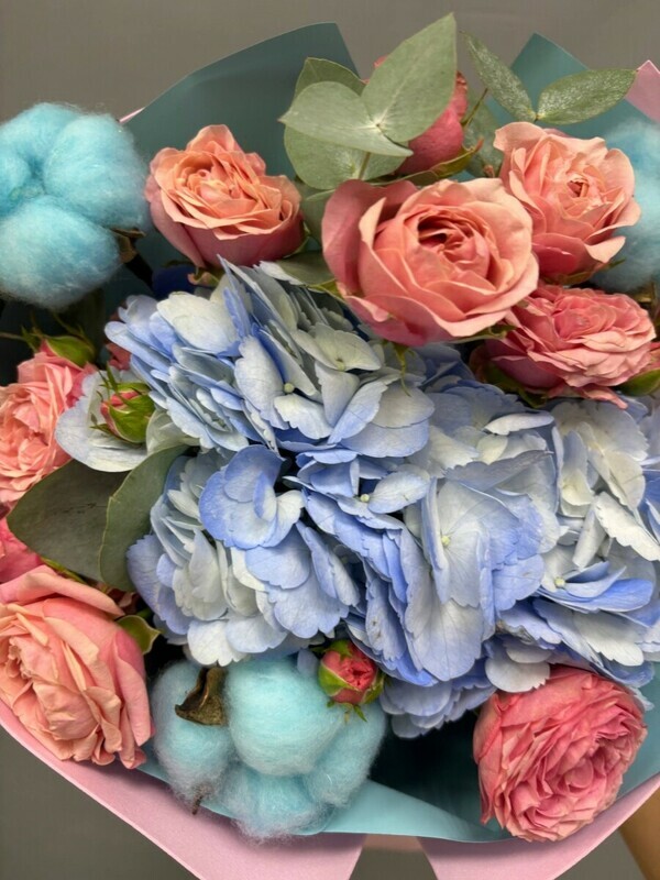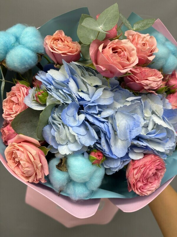 - Букет с гортензией и хлопком