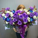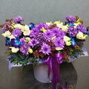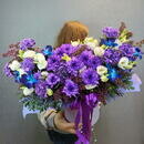 Композиция из орхидей, сирени, эустомы, хризантем и диуантуса