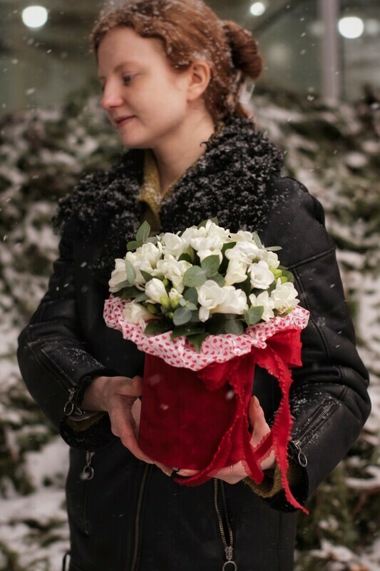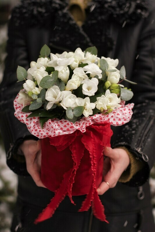 - Белые фрезия в коробочке S