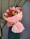 Яркий круглый букет, который создан, чтобы дарить эмоции без повода. Сочетание нежно-розовых хризантем, насыщенных красных кустовых роз и кремовой альстромерии делает композицию стойкой и запоминающейся. Закажите этот жизнерадостный букет с гарантией своевременной доставки по Ростову-на-Дону — идеальный способ украсить день себе или близким.