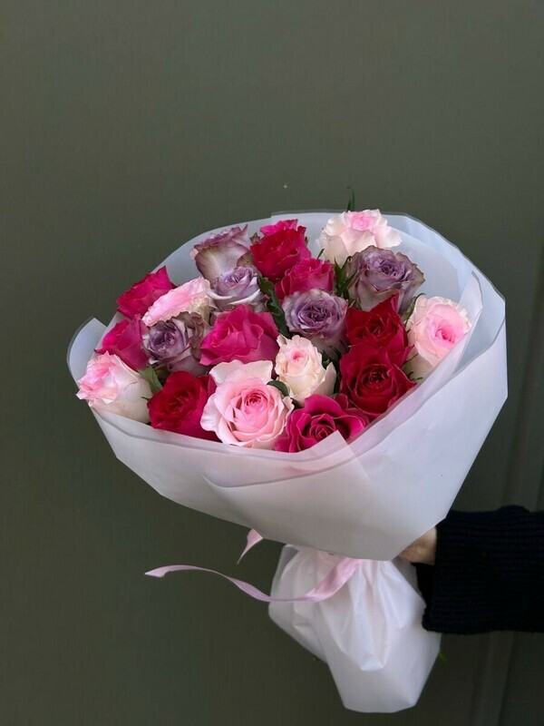Нежный и стильный букет из 21 кенийской розы. Пастельные оттенки розового, лавандового и белого идеально подходят для подарка на 8 марта или романтического сюрприза без повода. Доставка цветов по Ростову-на-Дону. Качество и свежесть гарантируем!