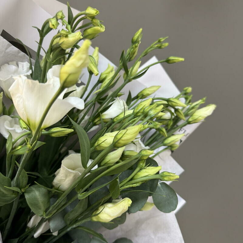 - Букет из белой Эустомы и Эвкалипта для мамочки